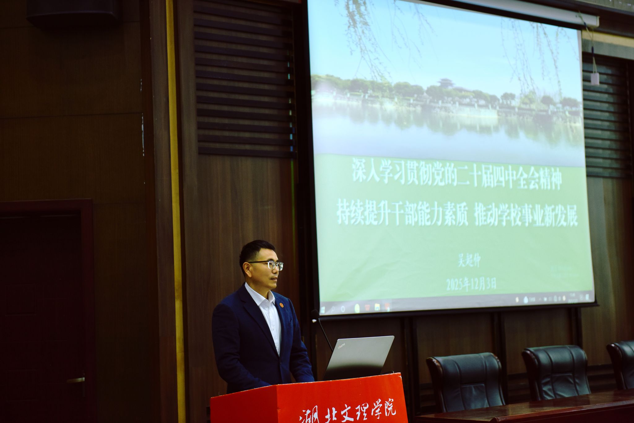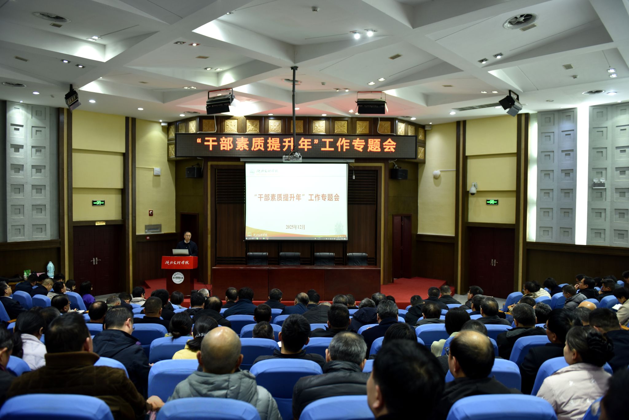 (党委组织部 通讯员 李雨霏)12月3日下午,学校召开“干部素质提升年”工作专题会,旨在贯彻落实省委“干部素质提升年”工作部署要求,强化示范引领,激励担当作为,加强纪律教育,推动学校干部队伍建设提质增效。学校党委书记吴超仲出席会议并作题为《深入学习贯彻党的二十届四中全会精神 持续提升干部能力素质 推动学校事业新发展》的讲话。全体在校校领导及中层干部参加会议。会议由学校党委副书记、副校长、组织部部长张樊主持。